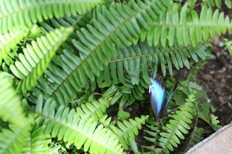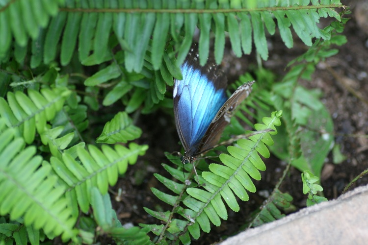 As its common name implies, the blue morpho butterfly’s wings are bright blue, edged with black. The blue morpho is among the largest butterflies in the world, with wings spanning from five to eight inches.