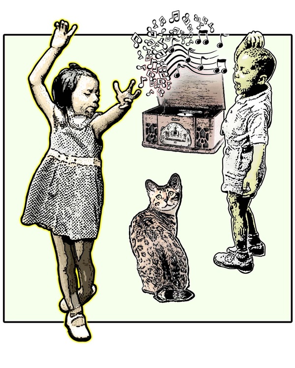 Dancing to music begins at an early age even if you aren't the family cat...but I could be wrong about cats.
