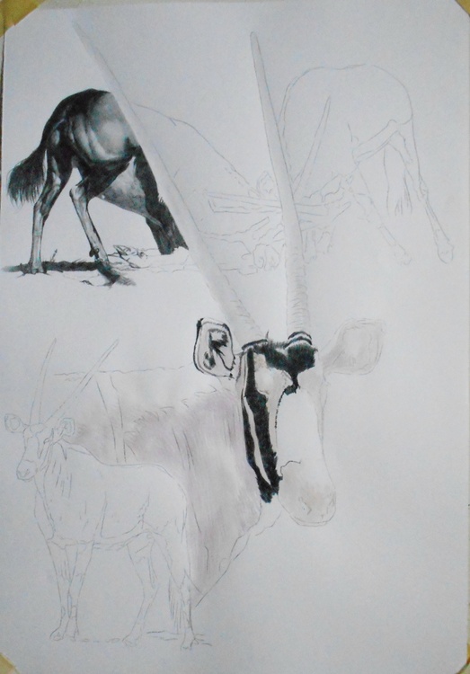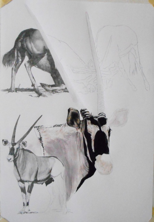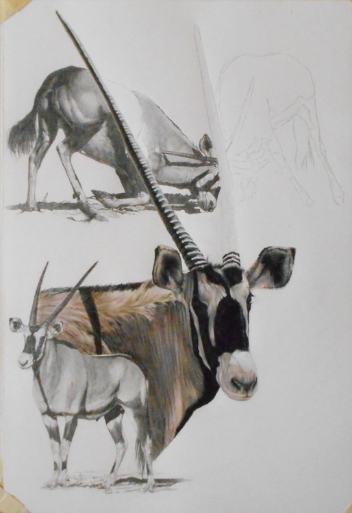 The most distinctive features of this heavily built antelope are its long, rapier-shaped horns and striking black and white facial markings. The beautiful horns of the gemsbok are sought after as charms in many cultures and were even sold as unicorn horns in medieval England . The body is fawn-grey with a black stripe along the side separating the upperparts from the white underparts, and there are extensive black areas on its upper legs (arkive.org).