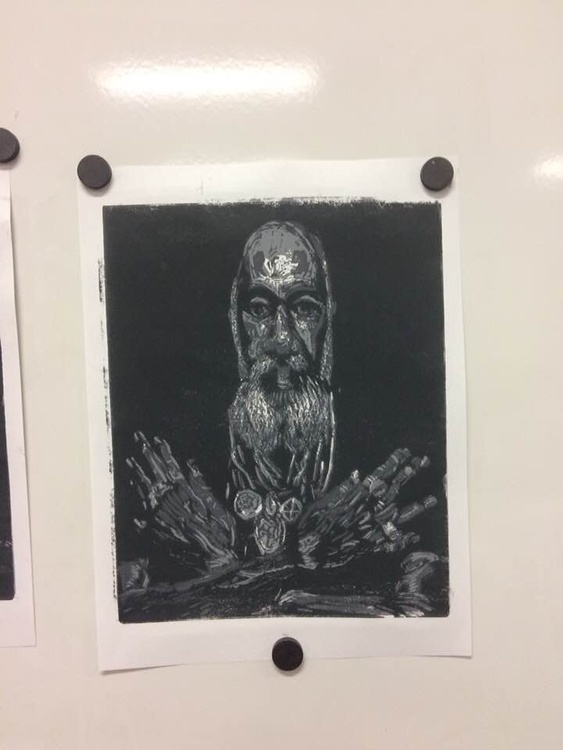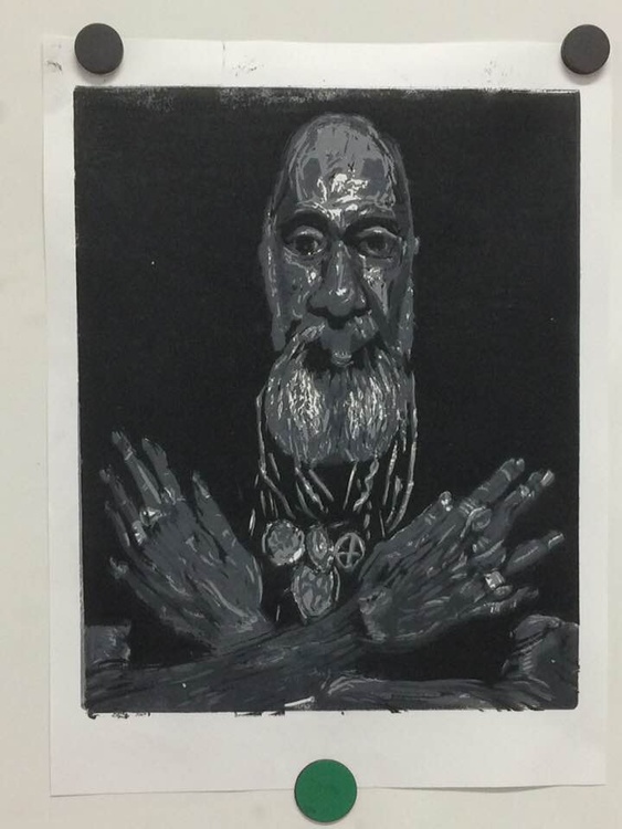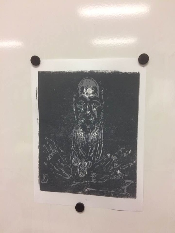 This is a fan art portrait that I created of Richie Havens as an exemplar for my middle school 2D art elective students. Run of three, 8 x 10 inches, four colors plus white.