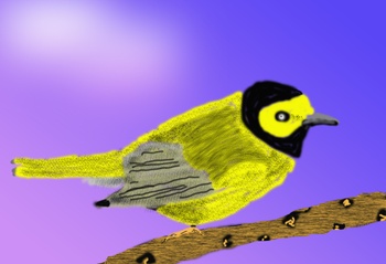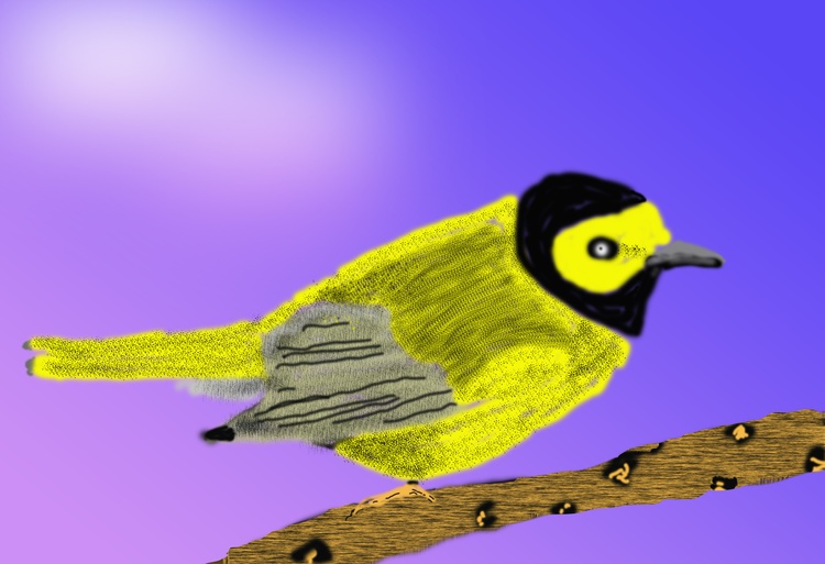 A yellow bird up in a "lemon tree" or some kind of branch.
