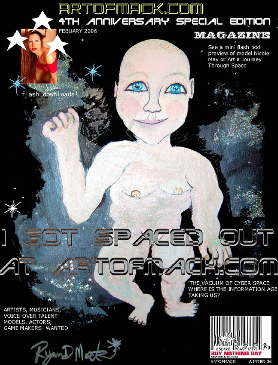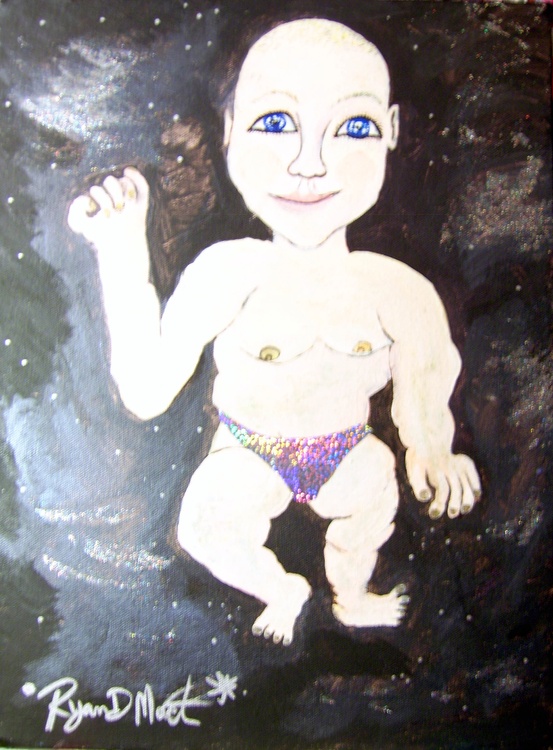 Inspired by the LIVE song I Alone. Rad Art of Mack presents : The original Acrylic Art piece Baby in Space. Available for the first time: This original painting features fluorescent pigment (glows under blacklight) and holographic metalic accent.