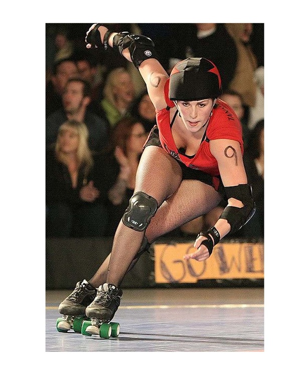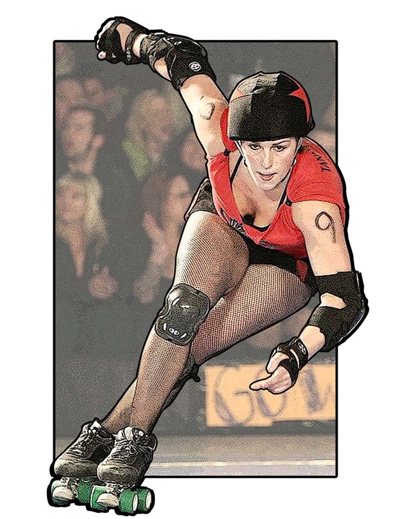 Dynamic and brilliantly created sports action artwork Andrew. I own the DVD version of the roller derby centered movie: Kansas City Bomber -1972- Starring Raquel Welch. :)