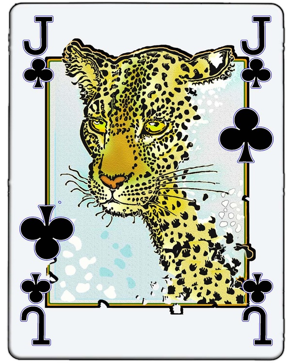A traditional French & English deck of cards pictures a traditionally dressed aristocratic man of 16th or 17th century Europe as a jack or knave. Any extra codes or meanings will depend on personal imaginations, group projects or what one is willing to believe... but what if a traditional knave of old became a big cat with an attitude?