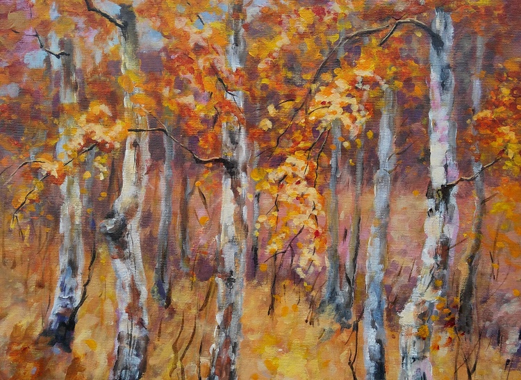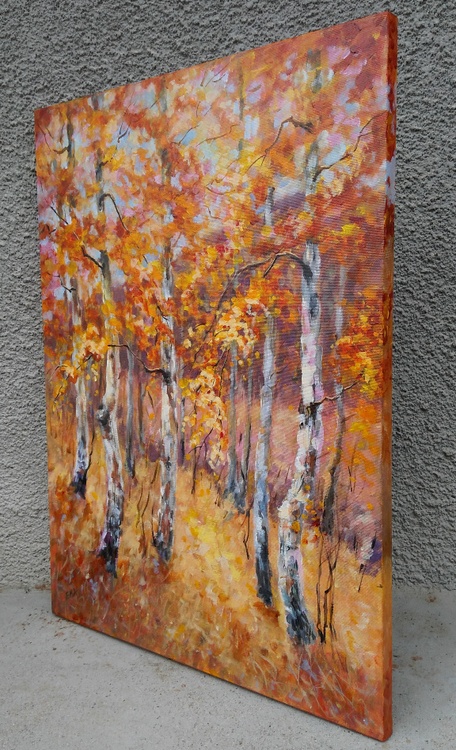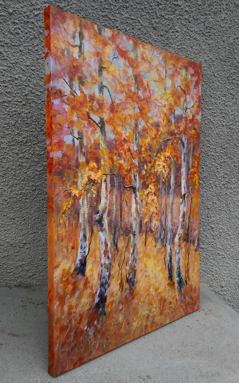 I am practically in love with every tree. They are so beautiful in my eyes. So beautiful in their various stages of metamorphosis. So beautiful in their dramatically changing conditions and moods. So beautiful that they became my favorite subject to paint. I love the energy that I feel around them, the comfort that they bring in my soul, the strong connection with the earth that they teach me. I love the bunch of colors they radiate when bathed in light and how this palette changes during different seasons. Especially when Madame Autumn makes the mise-en-scene, trees become the greatest divas ever seen. This original acrylic painting is done on stretched cotton canvas 2cm deep. Sides of the painting are painted so it could be hang as it is without a frame if preferred. The painting will be sent safely packed within 4 working days after the purchase. A certificate of authenticity will be enclosed.