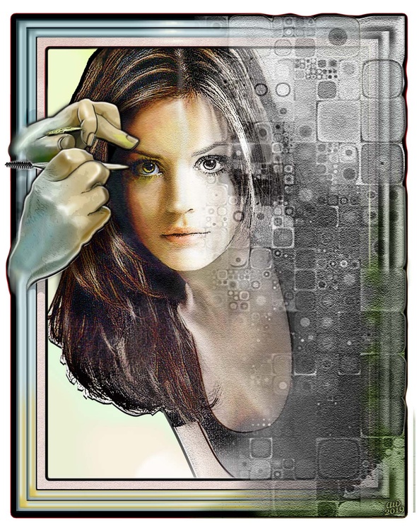 This is the latest rendition of an earlier image called framework (2017) that still amazes me what digital technology allows an imagination to do. This young face came from a 1995 hair advertisement magazine photo, but her eyes are what caught my attention then & now.