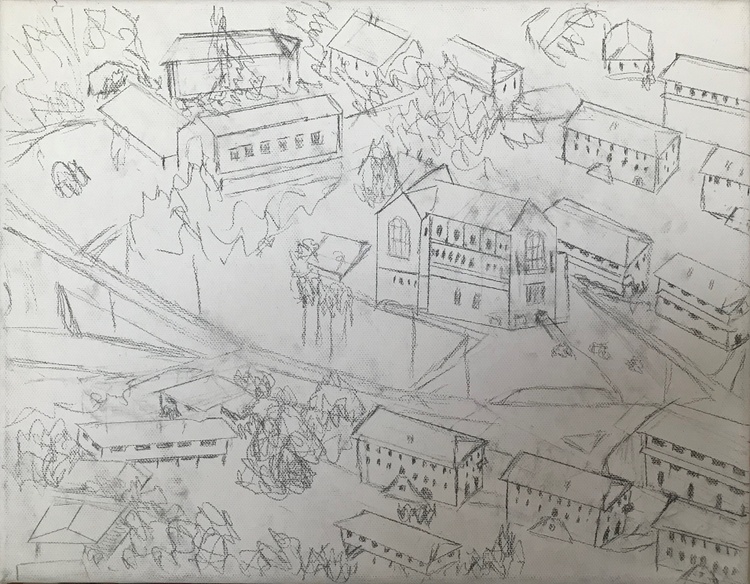 "Balboa Panama Canal Zone Another Area" acrylic painting I finished yesterday. 2 houses we lived in are on this; the back of the Tavernilla house top left,right above St. Mary's Catholic Church. It has a tree bisecting the roof. And in the bottom left corner, you see part of the roof of our new Flats 2 family house. The Fraunheims lived on the other side from us. Balboa Union Church that you see in the middle was where I went to church from Cradle school on; sang in the choir and was President of the Youth Group in Junior High School, went to summer Bible School when we weren't in PA with my grandparients; went on El Valle camp trips, I grew up in the Balboa Union Church; it was always a high light in my life. Yes, it was painted pink after I left. But that is alright. You can see Barneby, San Pablo, Tavernilla Streets and Balboa Road in this.