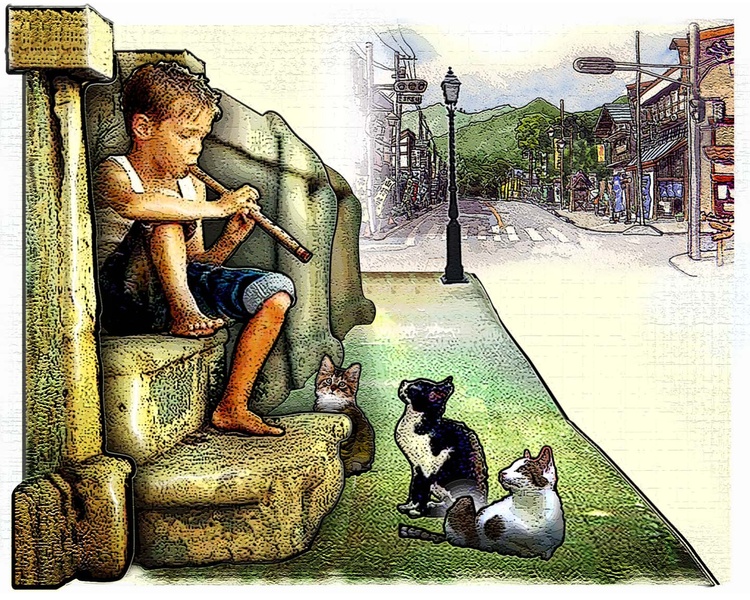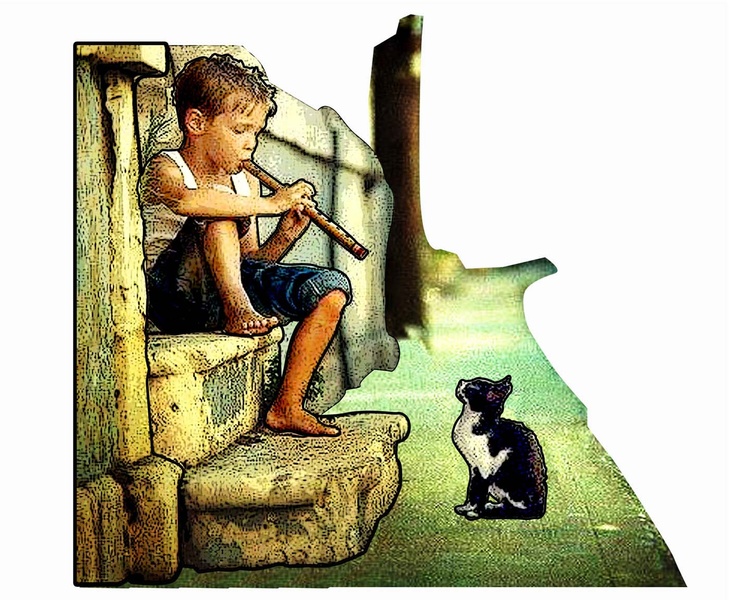 Whether or not the kittens understand music or this boy knows what he's doing, it is still an image worth drawing. The photographer who first captured this moment could offer the details to those who like to over-analyze such moments, but others are content to freeze them with an illustration.