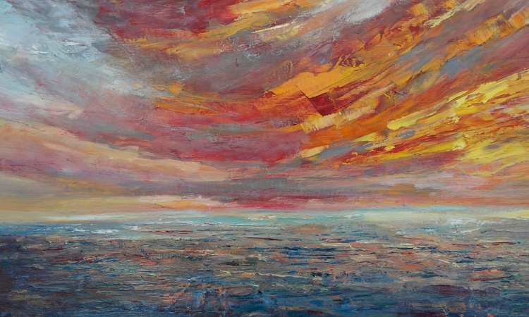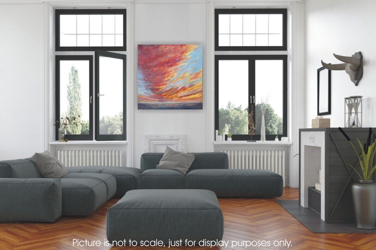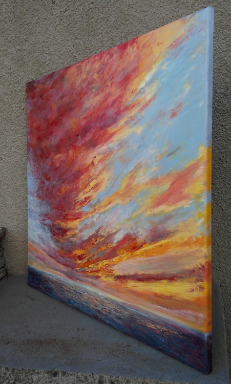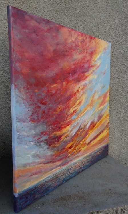 The sky has always intrigued me with its constantly changing scenes, colors and moods. I love clouds and I consider them alive and breathing. I see them free and powerful. I imagine them being in-love, mad, joyful, or just relaxing. I feel them talking with the ground, being connected with all creatures on the land, floating majestically above us all. They amaze me that much to dedicate them a new series of paintings of dramatic skyscapes. This original oil painting is done on stretched cotton canvas. Sides of the painting are painted so it is ready to hang. The painting will be sent safely packed within 4 working days after the purchase. A certificate of authenticity will be enclosed. *** please bear in mind that colours may slightly vary between the actual original painting and the way it looks on your screen due to different monitors settings***