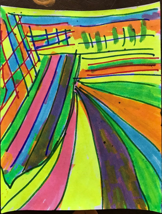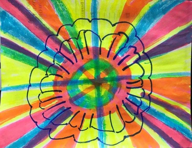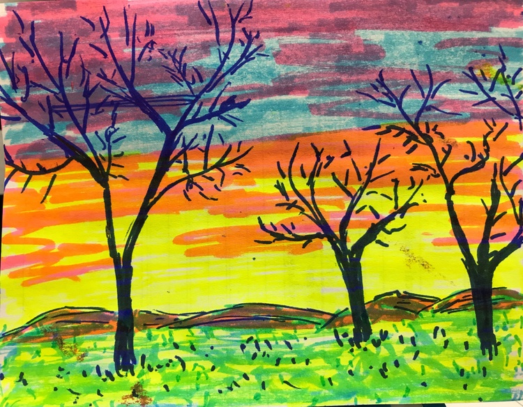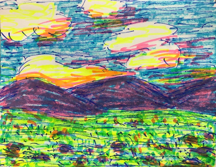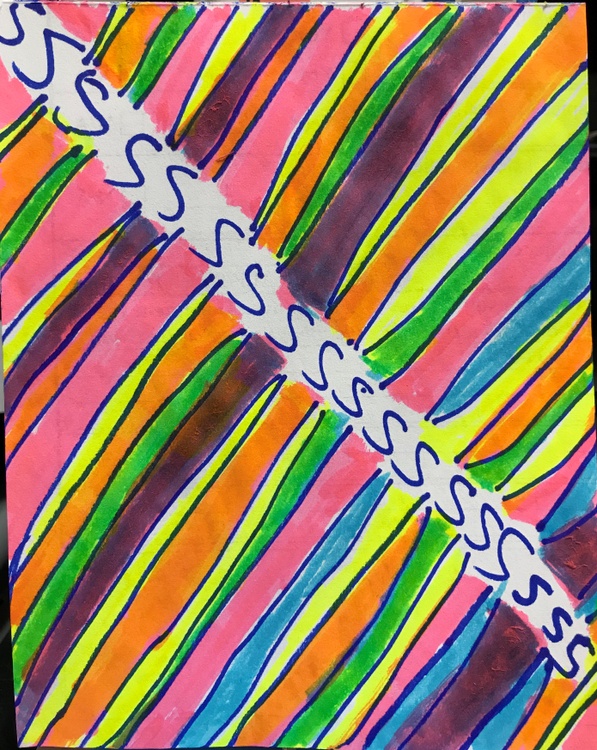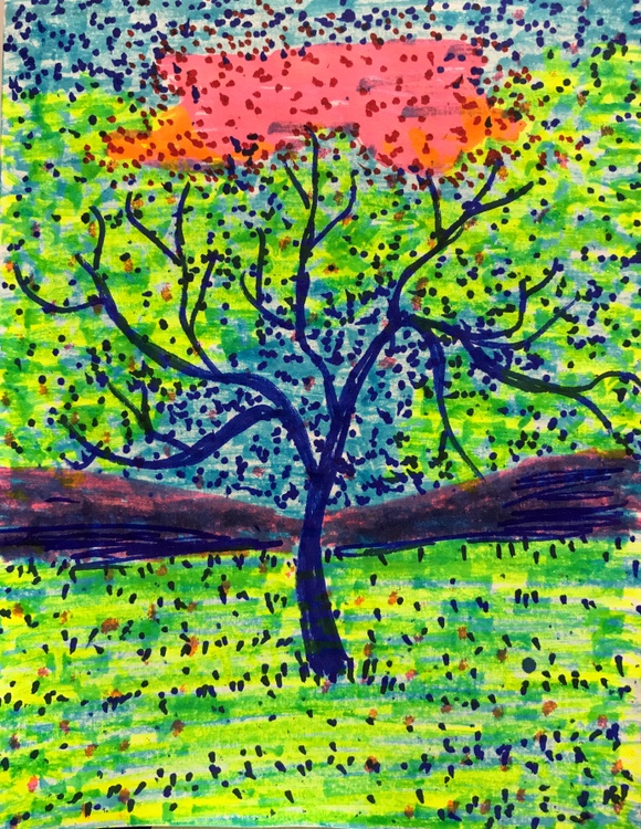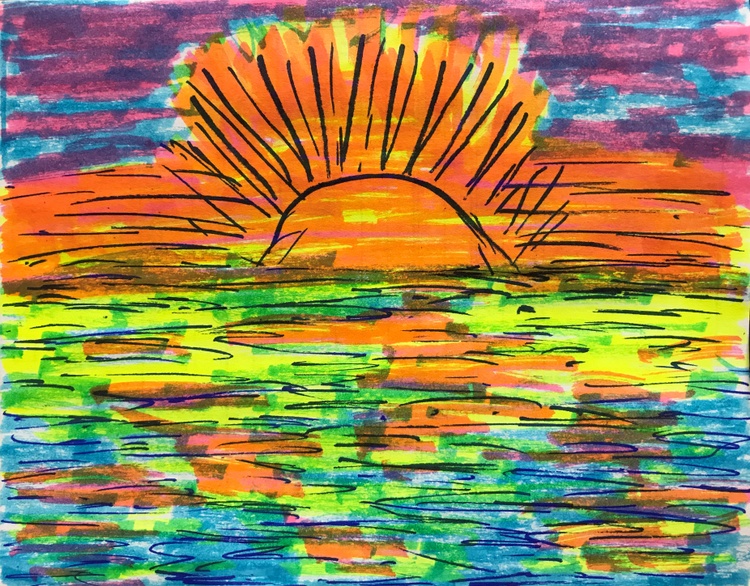 I painted these during slow times when I volunteer at Morton Plant Hospital. I used 3 markers, blue, pink, yellow & made the green with blue & yellow, purple with blue & pink, orange with pink & yellow.