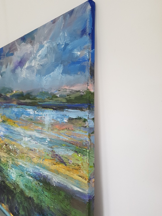 The beautiful seascape coast of the Welsh country. Oil on canvas. 70x70 cm, framed in black floater frame. oil in many layers and thick textures on canvas Framed in black floater frame. Ready to hang. The last years Wim van de Wege is a rising artist in Europe and the USA. His paintings have been sold to offices, shops, museums and private residences in USA, Canada, Singapore, South-Korea, Indonesia, Australia and Europe. Up until now in 40 countries! His work is represented by many Art Galleries in Europe.