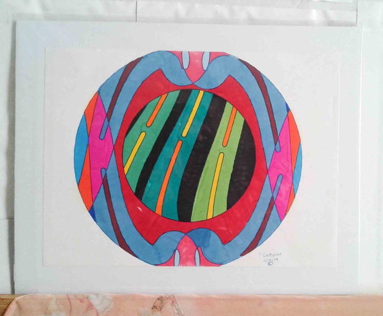 The three paths of my life, past, present and future circumvented by outside borders. On the freeway of life, which lane you choose determines the speed-bumps you encounter.Made with S curve tools overlapping. marker on paper, mounted, unmatted and sealed. Measures 14x11