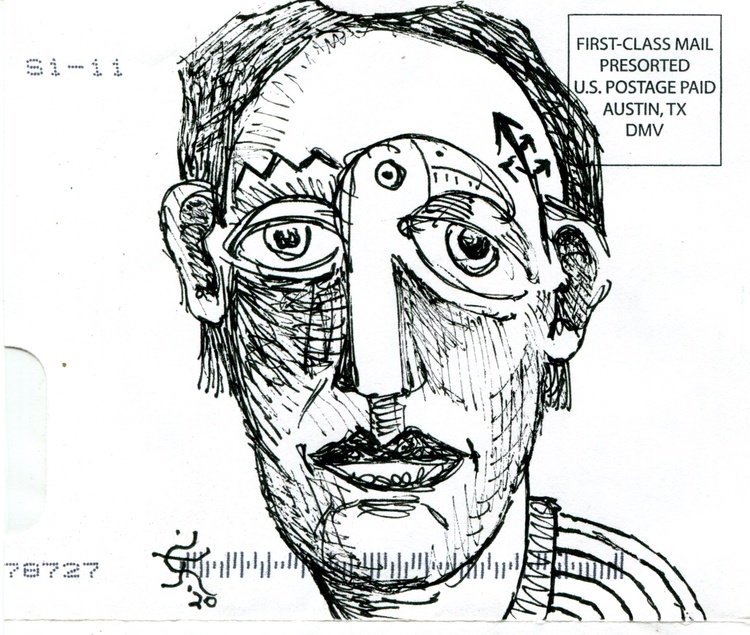 A troubled mind is a slow insidious condition that will gradually creep over the whole of itself if the root cause of the malady is ignored. This is the basis for much mental turmoil and cannot be cured by any known cocktail of drugs, however the pill pushers preach to the contrary. Much so-called mental disease is based upon this conundrum that is like a snake that eats itself. This is a 6 by 4.5 inches gel pen drawing with color pencil and is another symptomatic example of Original Jones Art as he attempts to heal himself in northwest Austin, Texas with just a bit of the salve of self-understanding.