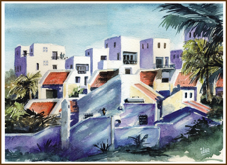 Enjoyable to look at with blue sky in tropical setting with houses built on a hillside. Must have taken some time to do.James Mann 29 Mar 2020