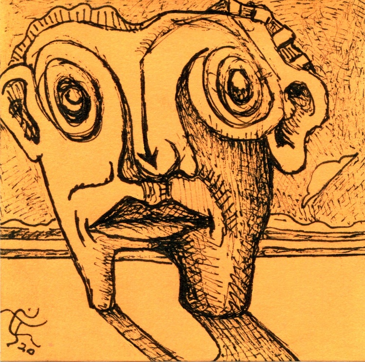 What was probably coined during or around WWI to describe an airplane going down nose first has become another ingrained phrase in your on-going using of idioms. I guess a diver could do one pretty easily. Our economy, unfortunately. Our health, etc. So I guess it was bound to crop up in an Original Jones Art piece sooner or later as he scribbles fast and furiously in northwest Austin, Texas. This is a 5.75 by 4.5 inches gel pen with color pencil drawing on medium bond acid-free paper, FYI.