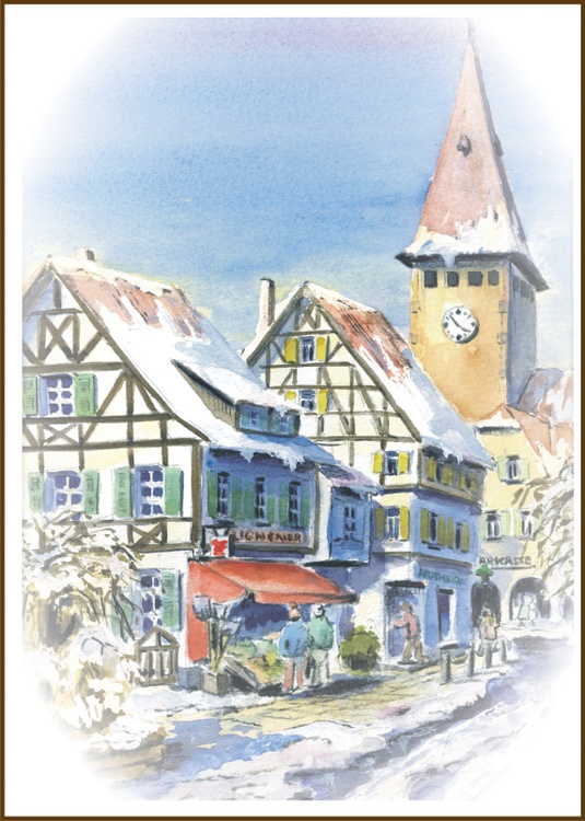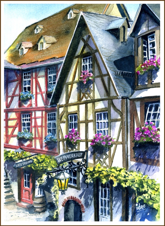It seems that I am not alone when I say that I am a fan of Alsace, I visited the region several times, both on the French and German sides. Half-timbered houses, cobblestones and ornamental signs. Villages that seem to come straight out of a movie. This Eguisheim watercolor shows why. Image size: 260 x 360 mm