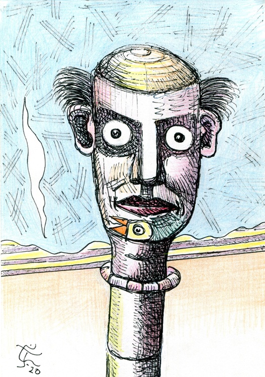 GREAT WORK CHARLES..LOVE THIS GUY,,,THE MIXED UP SOCIAL PIRIAH WITH STRANGE RUMBLINGS INSIDE HIS HEAD AND APPEARING LIKE THE CARTOON EMOTIONAL STRESSED MANIAC ABOUT TO HAVE SMOKE STEAMING OOUT OF HIS EARS....WOW--I LOVE THIS ONE!!! MY PICK OF THE DAY!Elton Houck 15 Feb 2021