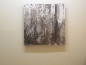 "Winter Pines " this contemporary abstract is a painting by joseph piccillo 24 x 24 inches on museum stretched canvas. A black , white and grey modern color field painting depicting the woods in Pennsylvania during a December snow storm . I find these colors mysterious and sophisticated.