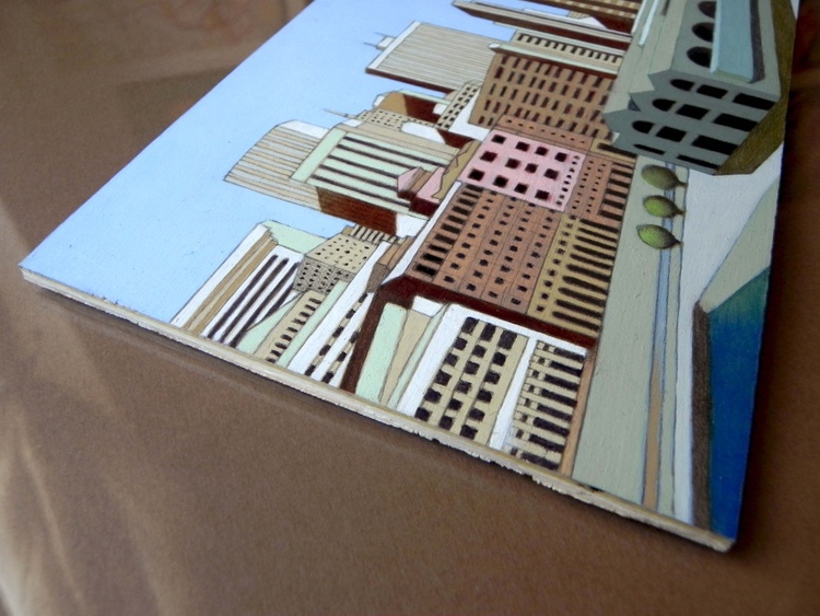 From a series of small urban landscapes. Oil on wood panel (plywood). Original painting sold.