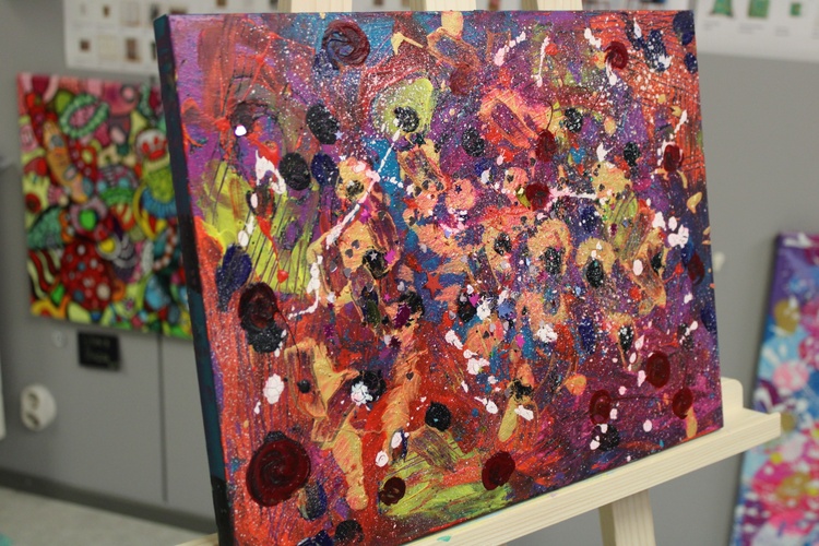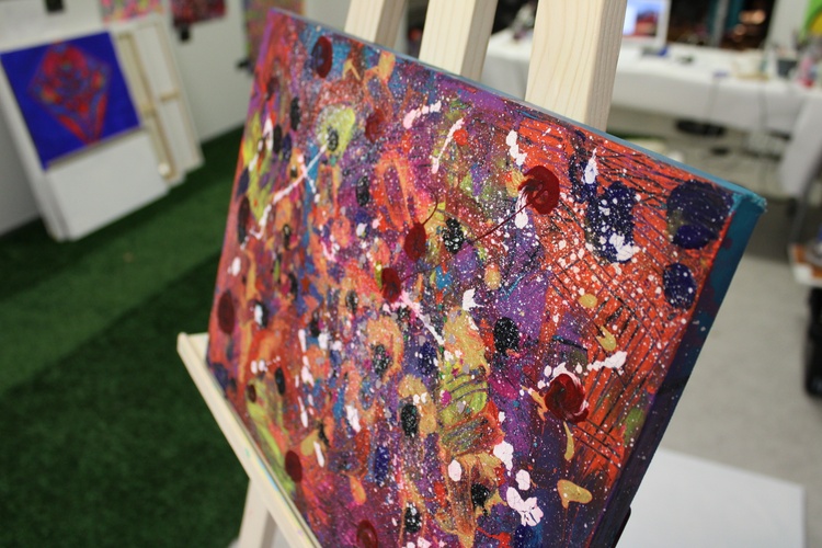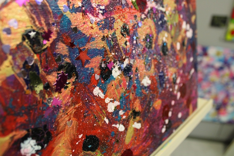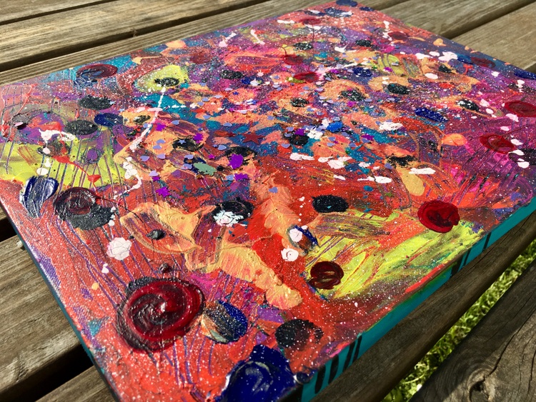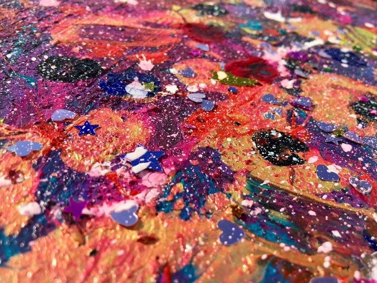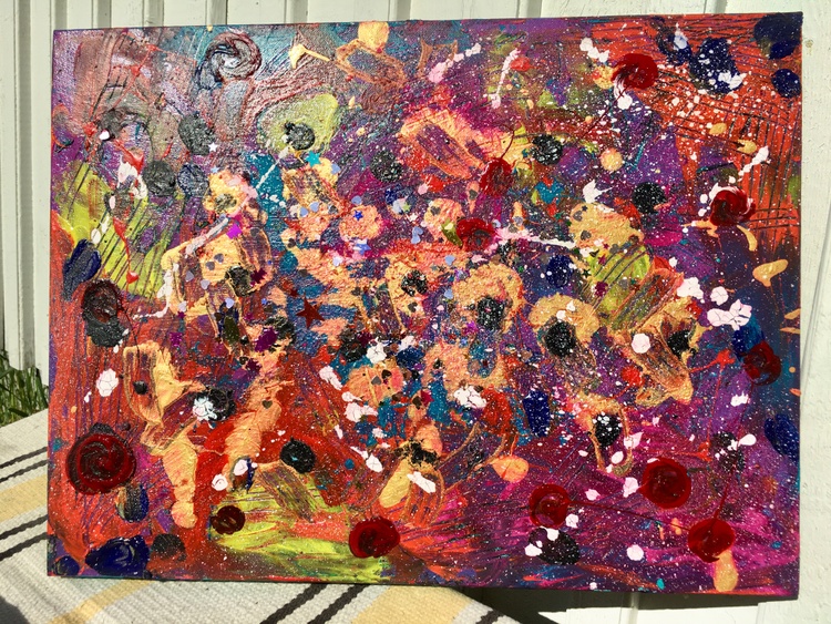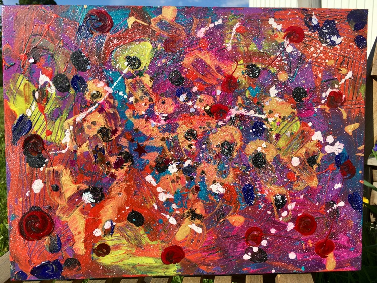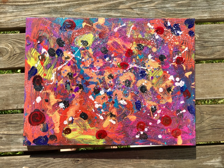 Very cute cosmic work made in series with red dots. If you want some magic in your room - this work is definitely what you are searching for. A deep universe can be found in it and when strays of sunlight touch it - the magic comes out! Acrylic, gouache, a splash of inspiration, and expression. If you would only have seen me creating it. It was an artistic ecstasy state.