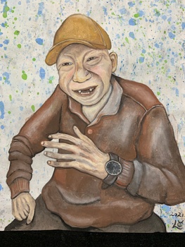 Brilliantly created expressive portrait painting and drawing Yi chun Lin. Glad that your grandpa is doing well. :)