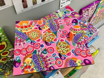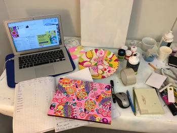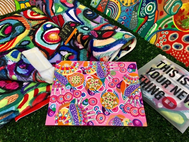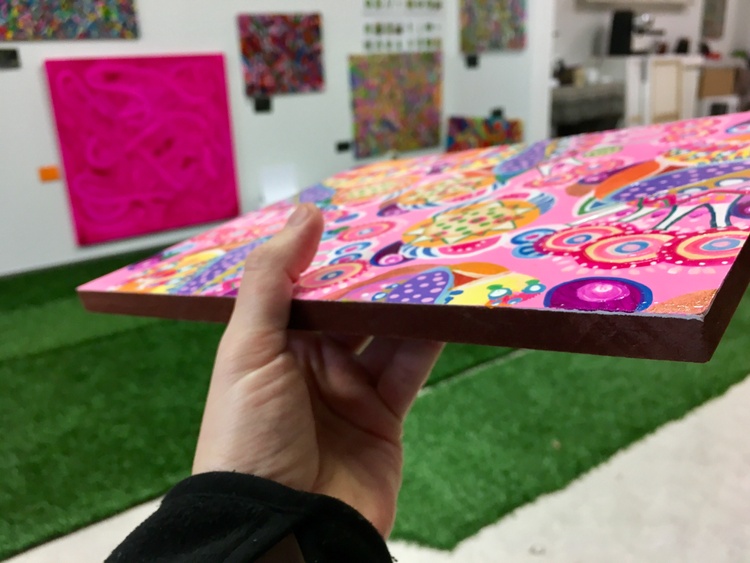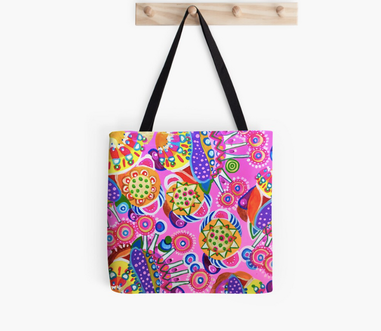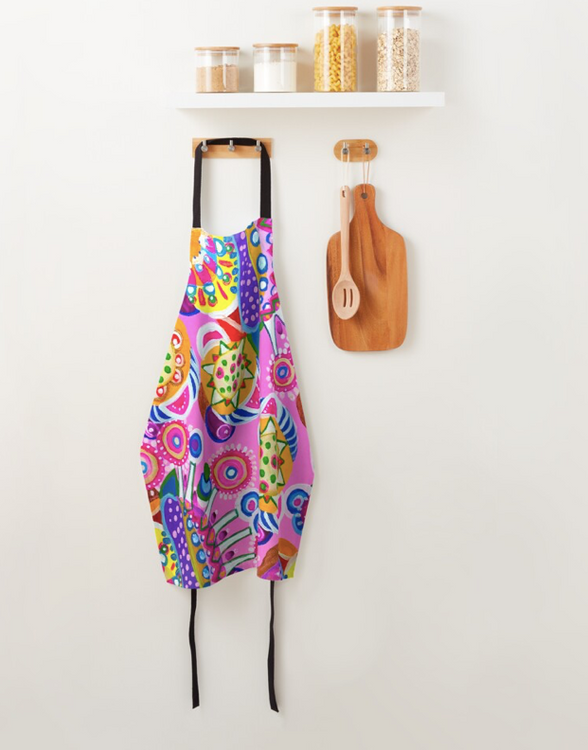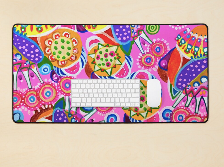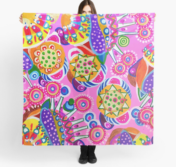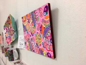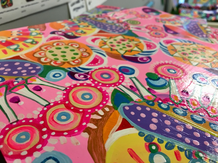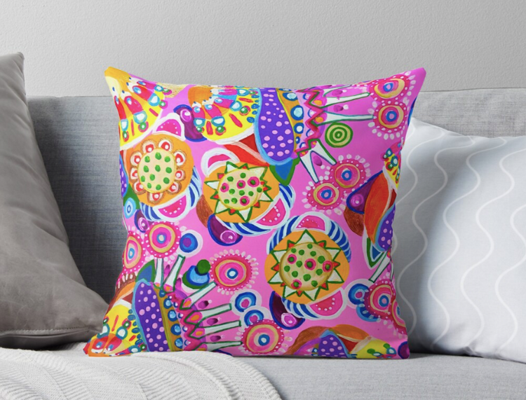 I was very inspired when I painted this artwork. I wanted to create a wonderfully colorful collection. While painting it I was thinking about final products. My idea was to create a really colorful interior decoration. When making a new design I try to imagine how it will look in big size. The original artwork is small, the image is subconscious. I have used pink background and only colorful shapes. I avoided using black to let my artwork stay really colorful. It took me 12 hours to paint this artwork. The original is intended to be a source for further designs. I like to have my works printed on a large scale without spending one week painting them. By making small artworks I save a lot of time. Art is my natural need to express myself.