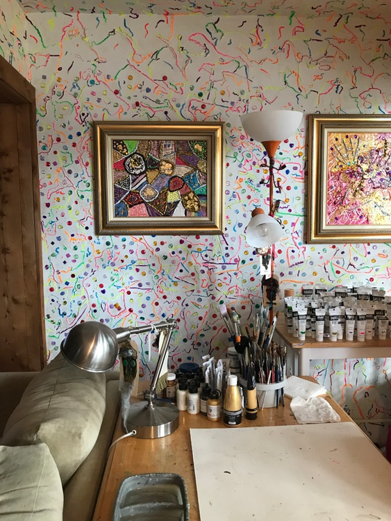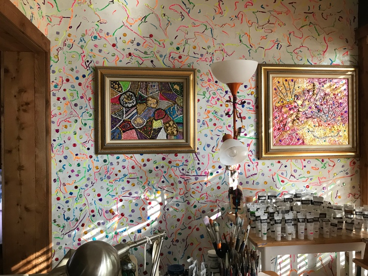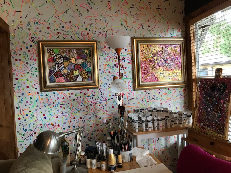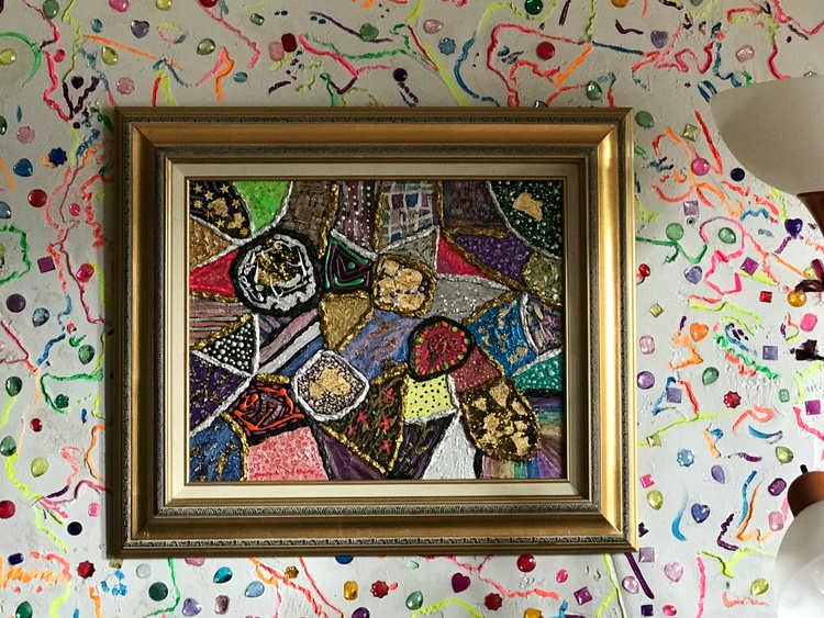 "Patch Work 14" that I finished Wednesday. Again I used Mica, Interference, Iridescent, Liquid Mirror, Metallic, and Pearlized Acrylic Paints with some glitter. Oh and some Gold Flakes also.