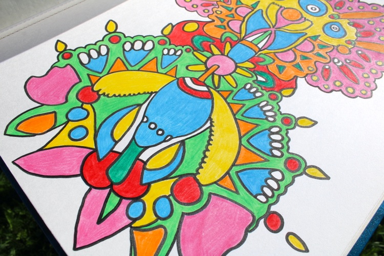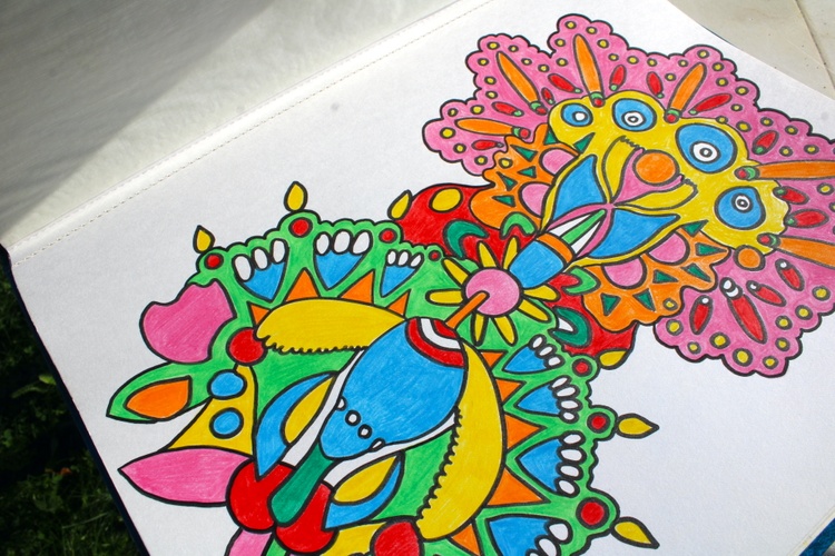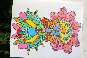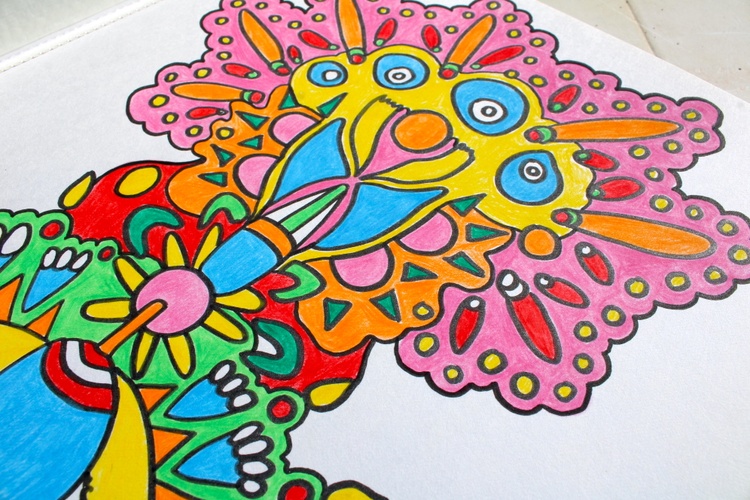 Crafted over several days, this artwork embodies positivity and a joyful spirit. It's a visual feast of colorful doodles that invite viewers to explore a world of imagination and boundless possibilities. The use of colored pencils and markers on the thick paper creates a tactile and immersive experience, drawing you into a fantastical realm of hues and shapes.