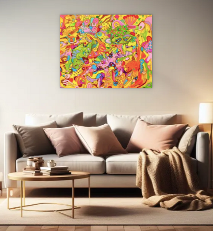 As a unique and original piece of contemporary abstract art, "Radiant Reverie: Symphony of Colors" offers significant investment potential. Abstract art continues to be a favored choice among collectors due to its timeless nature and versatility in complementing various interior designs. The painting’s vibrant colors, intricate patterns, and dynamic composition ensure it will remain a focal point in any collection, valued for both its artistic merit and visual impact.