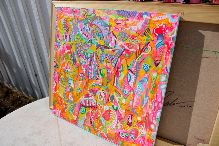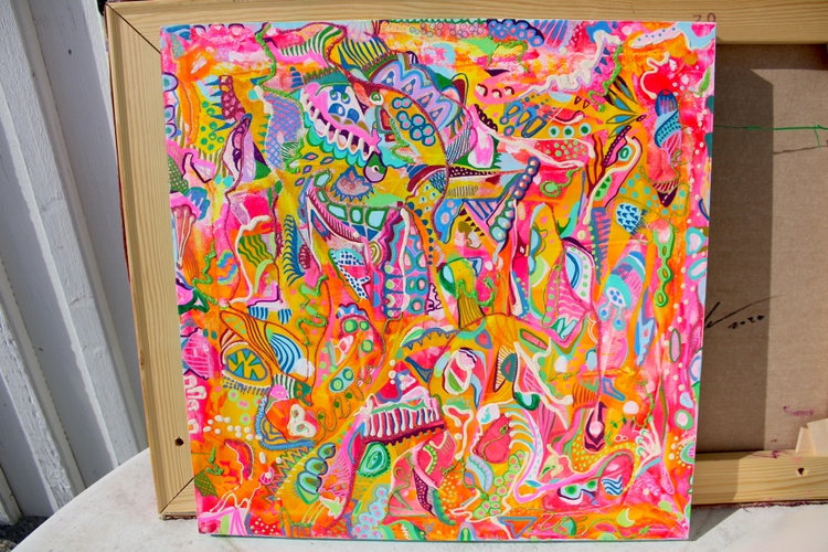 "Concentrate of Abstract Colorful Doodles" is a vibrant and dynamic painting on canvas, created in 2023. This artwork, measuring 40 cm by 40 cm, is designed to captivate art collectors who appreciate the exuberant and whimsical nature of contemporary abstract art.