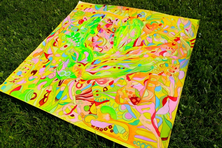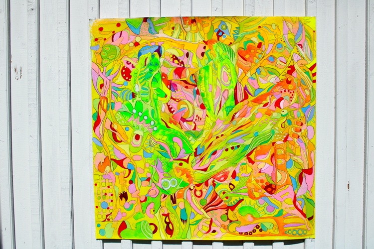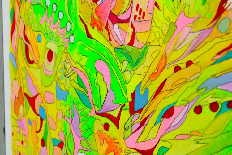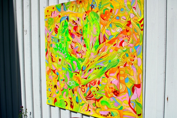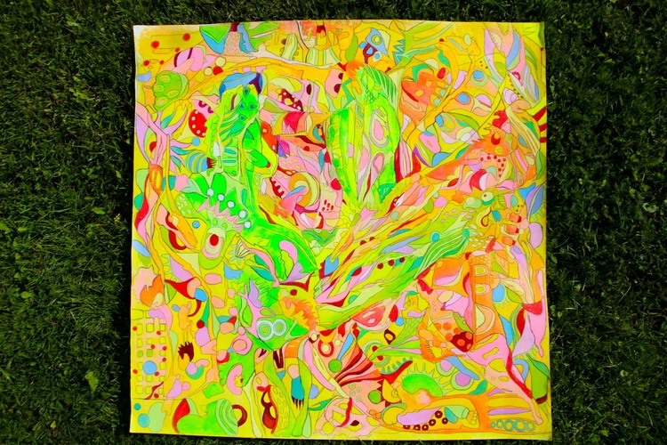 Each element of this painting has been carefully crafted to reflect the natural forces that inspire it. The acrylic medium on unstretched cotton canvas gives the work a unique texture and organic feel, enhancing its raw, expressive quality. This piece is not just a painting but an experience—one that resonates with the vibrant life forces of nature.