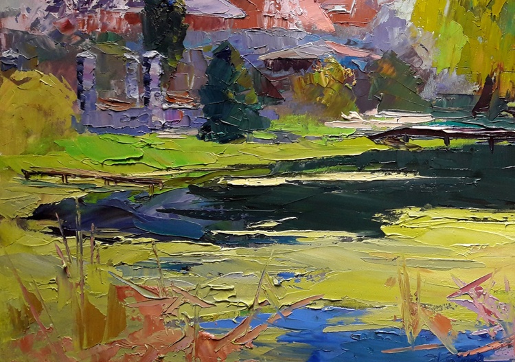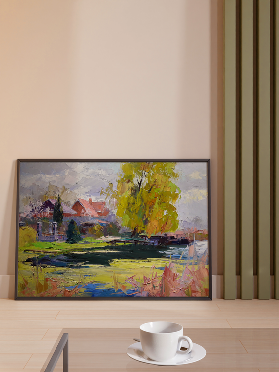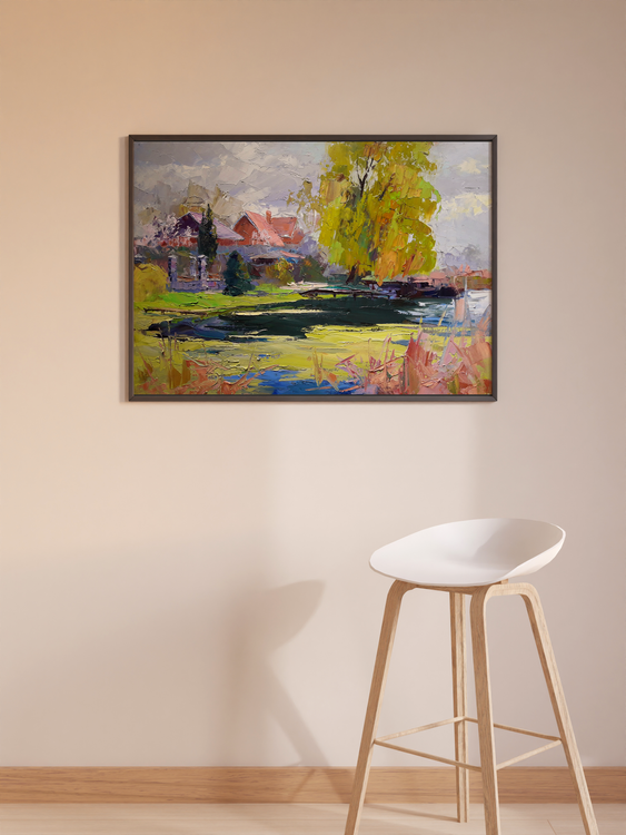 This beautiful oil painting "May" is the perfect addition to any home. The rates in the picture are so realistic and the trees and house above them are so well-rendered, you'll feel like you're right there in the scene. The colors are simply gorgeous, making this a truly eye-catching piece. Whether you hang it in your living room, bedroom, or office, it's sure to add a touch of elegance and refinement. 662