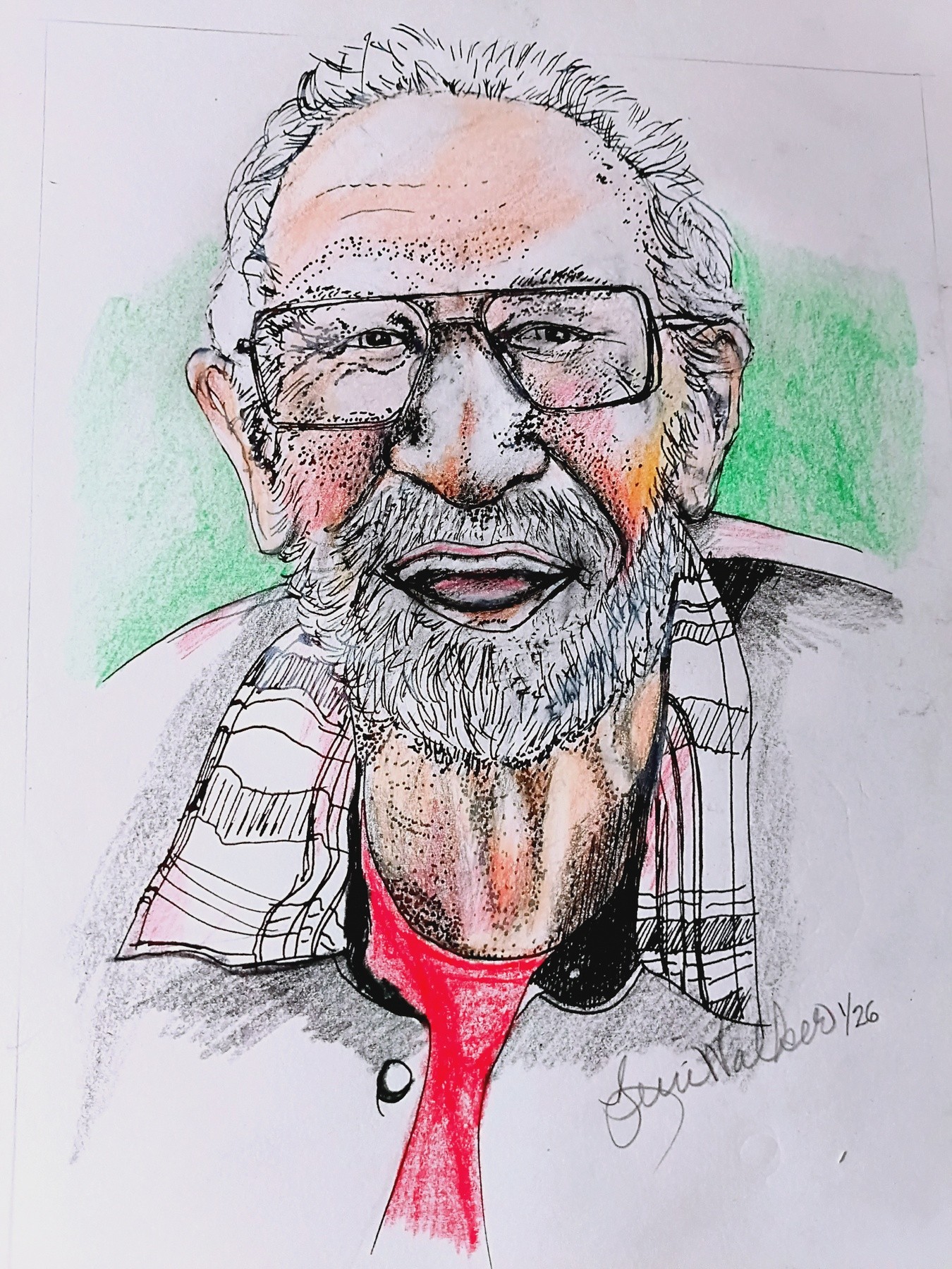 Portrait 9x6 pen & ink, prismacolor pencil of a friend