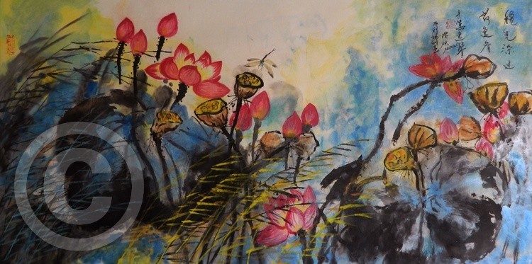 Painted in 2012, this signed original Chinese Brush (Watercolor) Floral Landscape impression painting is 53" x 26”. It is painted on double-layer rice paper. Incorporate is a 2.5" silk border surrounding the actual painting. This painting is not formally framed. This painting can be shipped in a standard mailing tube for protection. The original painting, if purchased, includes a signed “statement of authenticity” with the Artist’s Biography. This statement can be used by the buyer for insurance, estate planning, personal asset protection, or resale of this painting, if desired. LRB Fine Art reserves all copyrights of original and/or reproductions. Reproductions on canvas can be purchased at: https://fineartamerica.com/profiles/min-w or www.artpal.com/ontap456