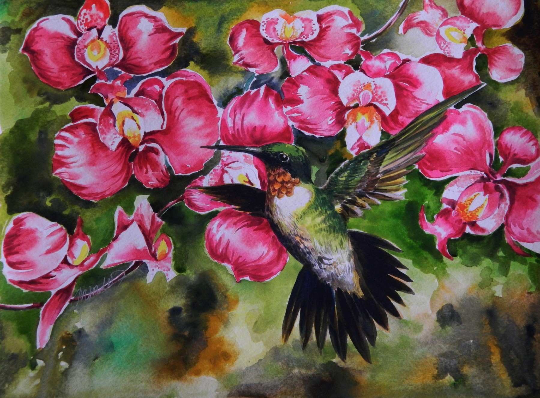 I LOVE HUMMIES. BEAUTIFULLY DONE. I DID ONE IN OIL YEARS AGO. I THINK IT'S STILL IN MY PORTFOLIO.