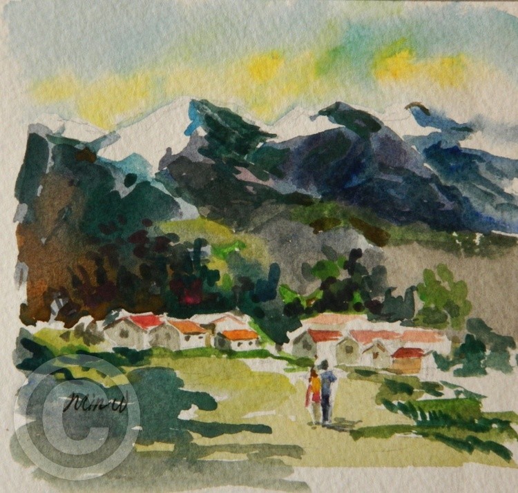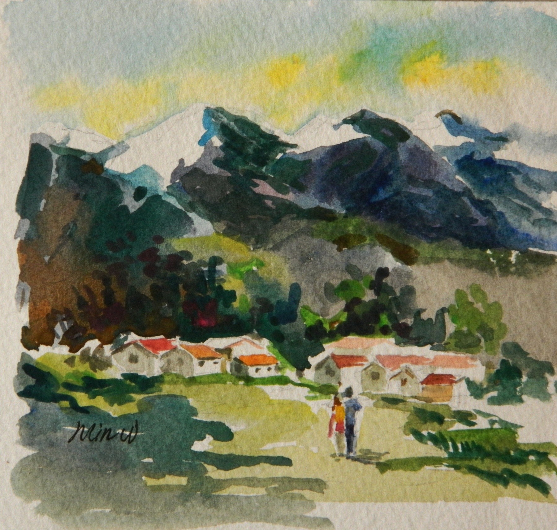 Painted in 2012, this signed original Watercolor Landscape impression painting is 4.5" x 4.5”. It is painted on a framed stretched canvas. This painting is formally framed, ready for display, and included in the price if purchased. Photos are available upon request of this framed painting. The original painting, if purchased, includes a signed “statement of authenticity” with the Artist’s Biography. This statement can be used by the buyer for insurance, estate planning, personal assets or resale of this painting if so desired. LRB Fine Art reserves all copyrights of original and/or reproductions. Reproductions on canvas can be purchased at: https://fineartamerica.com/profiles/min-w or www.artpal.com/ontap456