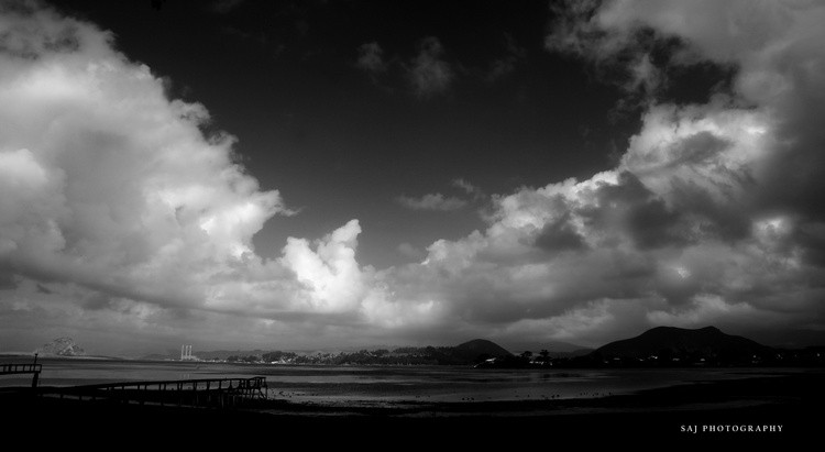 very cool. i like how the clouds form perfectly at the time of the capture. the clarity is great. the angle of the shot of this lake scene with small pier and hilly terrain around it and nicely formed clouds is great. the capture of the light is great. the presentation is balanced and eye appealing to the viewer. good eye and great job overall.