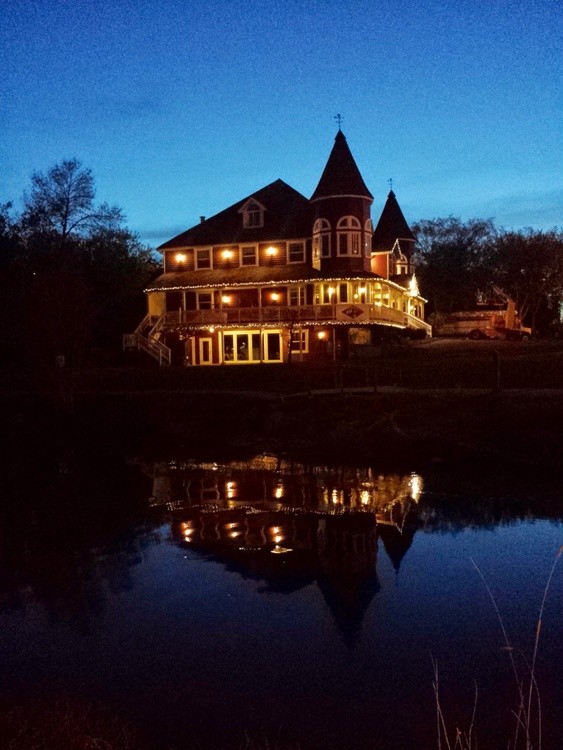 River House in St. Albert, Alberta, May 16, 2015. A commercial building on the Sturgeon River in St. Albert lit up beautifully and reflecting in the river.
