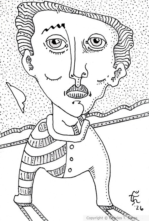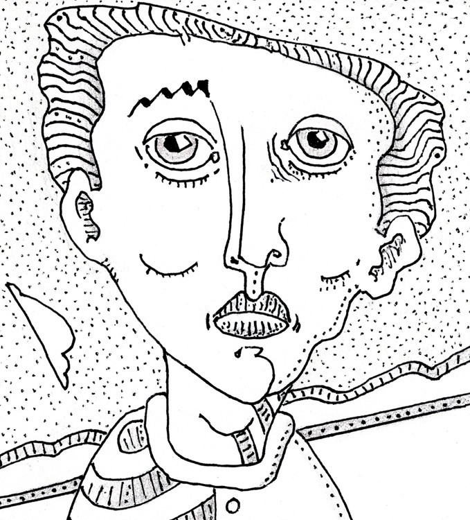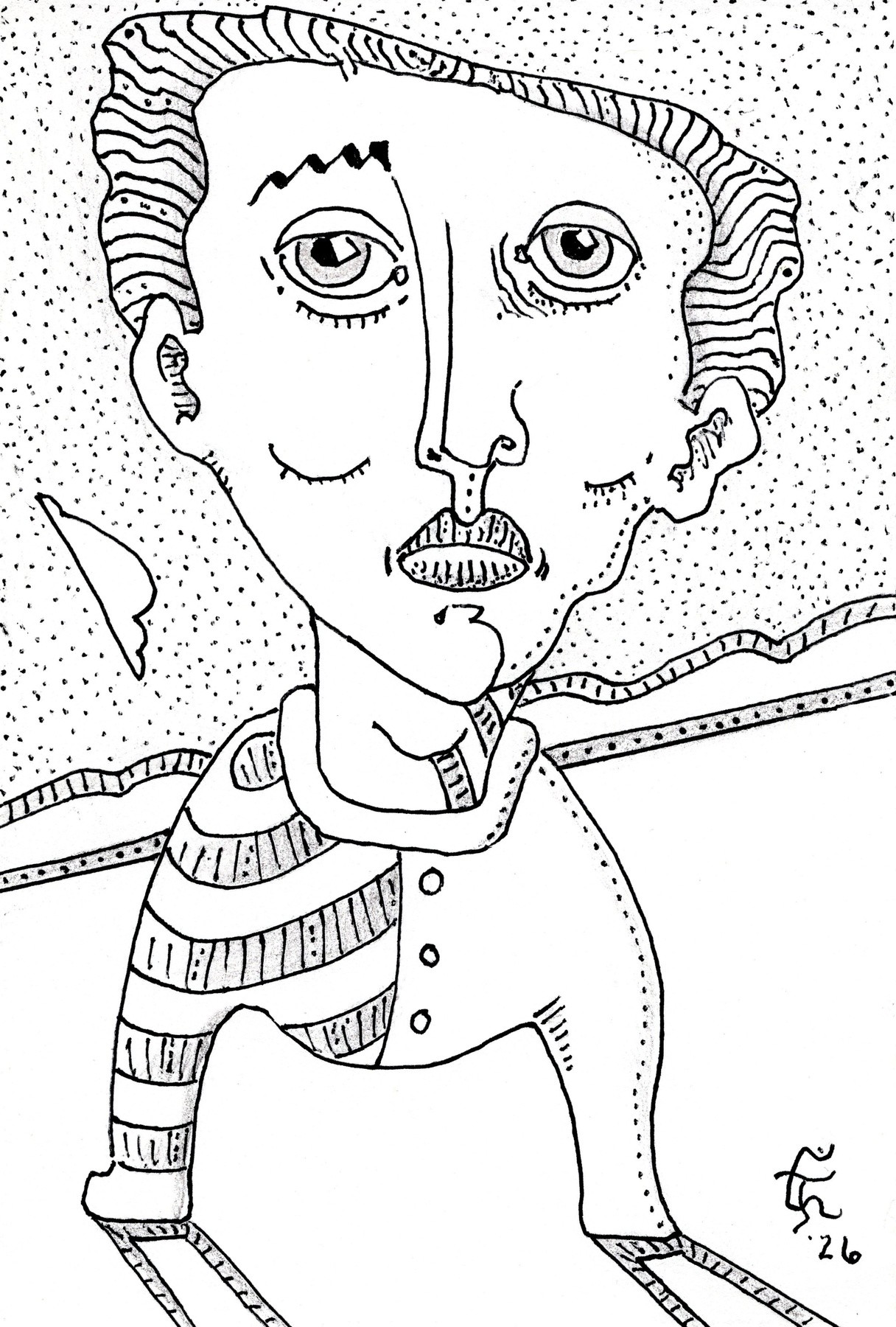 Yeah, there's a wild man in there somewhere, trust me. This is a 6 by 4 inches gel pen drawing with Crayola gray on medium bond acid-free paper. Original Jones Art still trying to pass himself on the thoroughfare here in northwest Austin, Texas.
