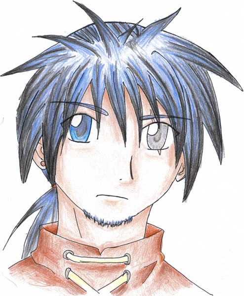 March 27 2005 This is... Bleu... I couldn't think of name to fit him.. darn. Rosearts kill pictures One of my OC's that the scanner murdered. My friends love the gotee (sp) and I'm glad cause it was something that stands out and really adds to the character. The blind eye also adds a lot to it the feel around the character. Sadly though that was not the color I was aiming for the shirt. I wanted it to be more... fleshy? Whatever. Before he was colored my friends also said that they reminded them of a cross between Edward (FMA), and Kenshin.... That kinda got me angry cause I worked hard on making him original. Meh. What can one do?