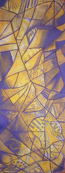 "Naked Ladies" 18"x48" Pastel Several pencil sketches of nude models drawn from life were placed throughout the composition. Their joints were connected with lines of pastel, which turned into shapes. Shapes were filled with pastel, pattern and a complimentary color scheme. All artwork images are copyright of Artist.