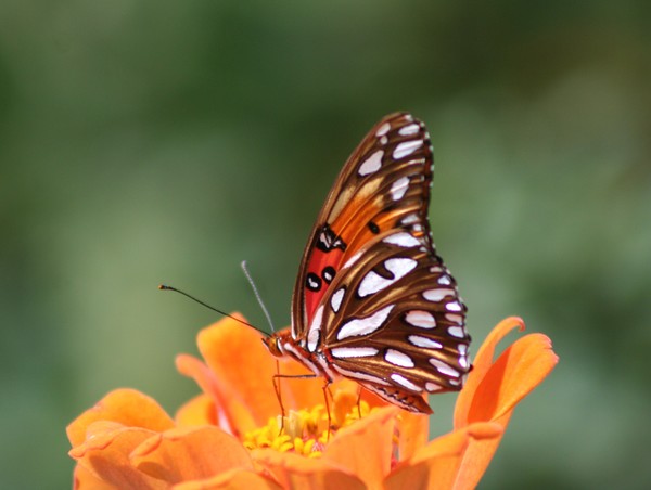Gulf Fritillary and orange zinna