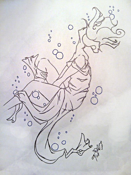 Sorry about the uneven light on the paper. I had to take it with my phone, and then I tried to lighten some parts in PS. Ink over pencil. This is going to be my next tattoo, as well. Along my left side. :) I can't wait.