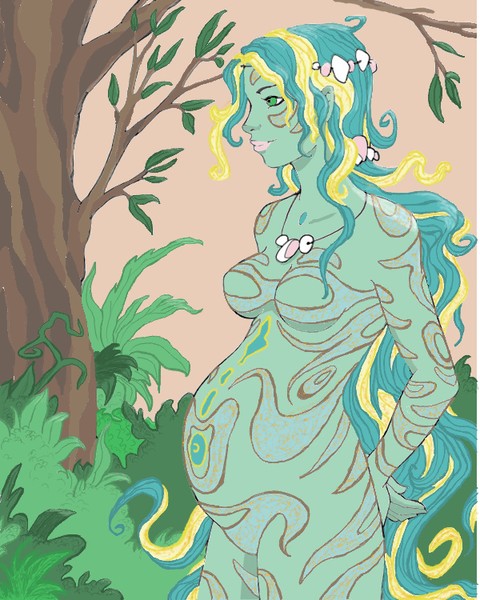 If she is a driad or a nymph of sorts I have not decided. One thing for certain though is her pregnant state. On a walk through the woods, she definitely has plenty to think about. What do you think?