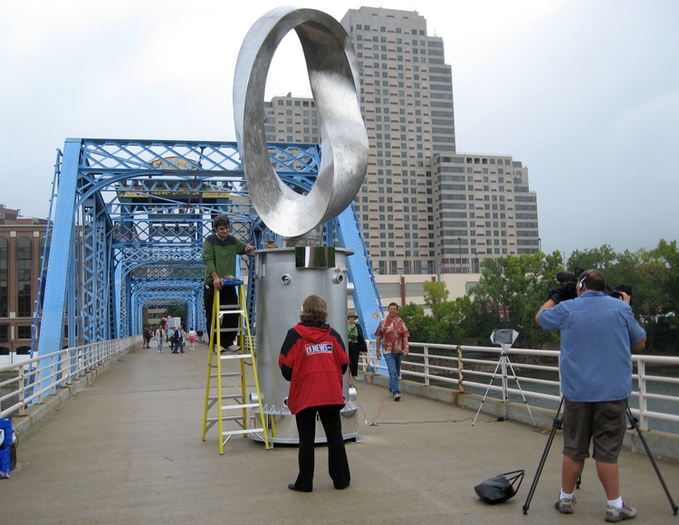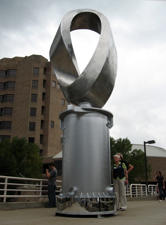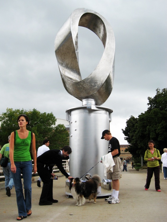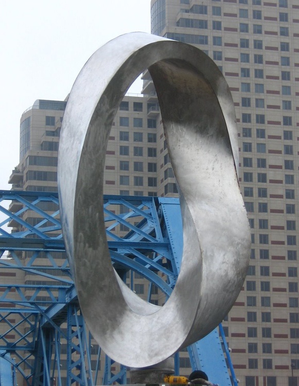 The Möbius strip is a surface with only one side and only one boundary component. In this work I combine two Mobius strips together with common edge. The result is one "double" rich and fascinating 3D form, representing the idea of continuance and endlessness of life... https://en.wikipedia.org/wiki/M%C3%B6bius_s trip