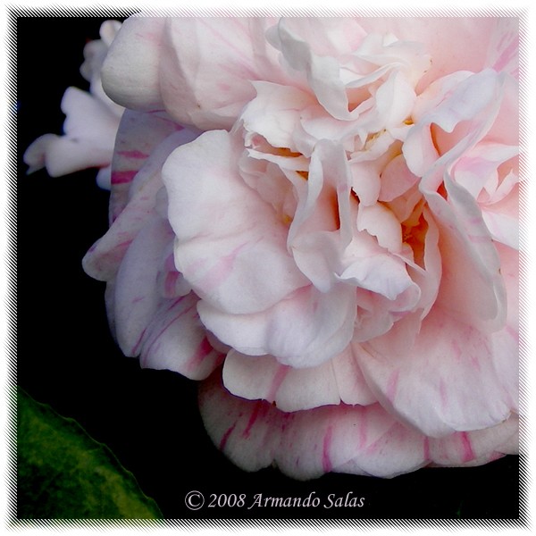 Wonderful weekend to all of you, my friends, and a special tribute to four adorable women because of their continuous concern and support during my illness. This camellia from one of the two trees I can see from my studio is for (alphabetical order:-)
