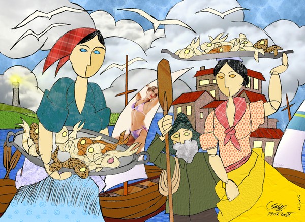 Pamela: these photos are taken from that book. Photos are © Foto Blanco (La Coruña). You can see peixeiras and the hard work of their men. Your brilliant B&W drawing has "the essence" of those photos. Do you agree? The same "spirit" for sure.
