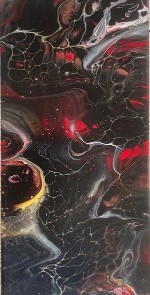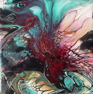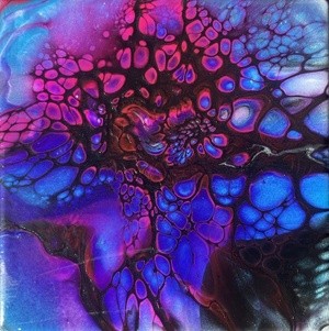 I love the creation process and the moment the work becomes the sum of its parts and somthing of beauty comes into being. Pour painting is the perfect medium for me. I can influence the outcome but I am as mesmerized as anyone else by the outcome.